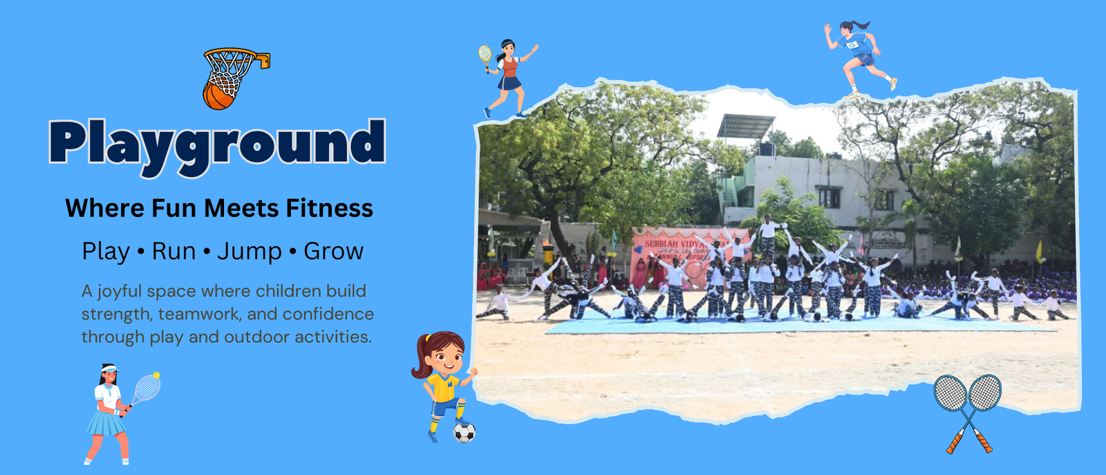 Outdoor play helps improve physical fitness, coordination, and overall well-being. Through games and sports, students learn discipline, leadership, and the importance of an active and balanced lifestyle.